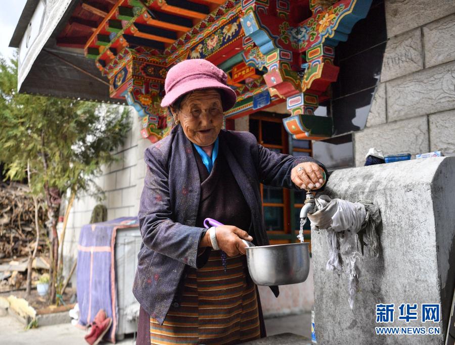 达娃在自己家中接自来水(3月15日摄)。