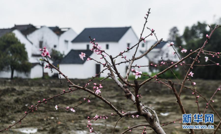 3月17日,东林镇泉益村种植的景观桃花初露芬芳。新华社记者 徐昱 摄