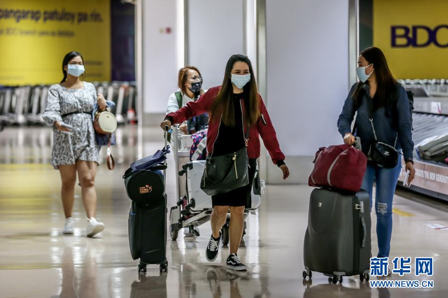 3月17日,戴口罩的乘客带着行李走在菲律宾马尼拉国际机场。新华社发(乌马利摄)