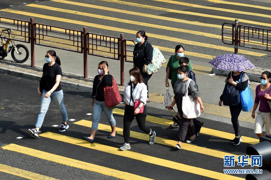 香港市民佩戴口罩出行(3月17日摄)。