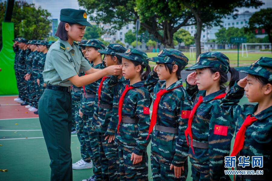 广东省深圳警备区组织对口帮扶的两所八一希望小学举办红色军事夏令营(2019年7月24日摄)。新华社发(欧锦坚 摄)