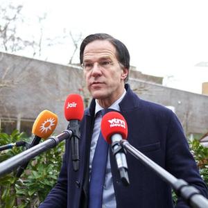 3月17日,荷兰看守内阁首相吕特在荷兰海牙一处投票站对媒体讲话。