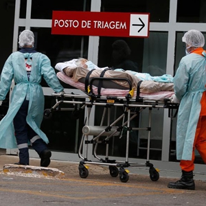 3月17日,一名新冠患者被送入巴西首都巴西利亚的一家医院。