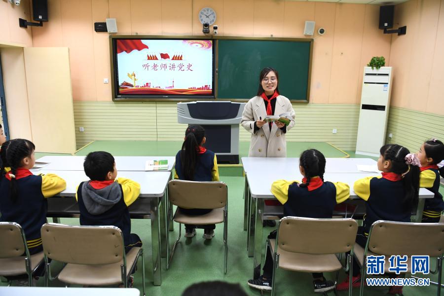 3月18日,合肥市建平实验小学南艳分校老师在讲党史。