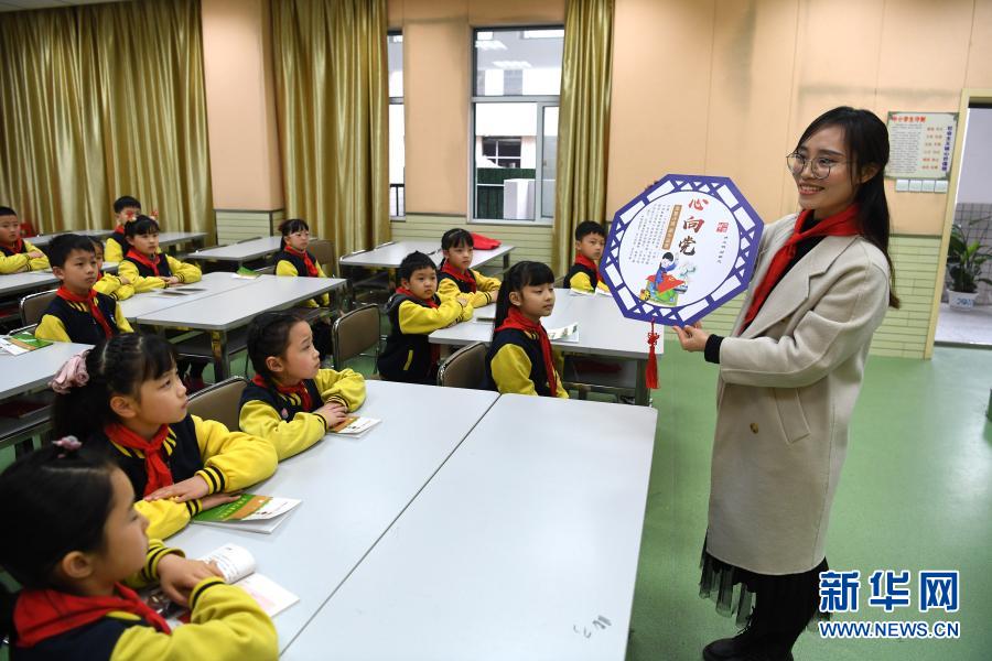 3月18日,合肥市建平实验小学南艳分校老师在介绍党史知识。