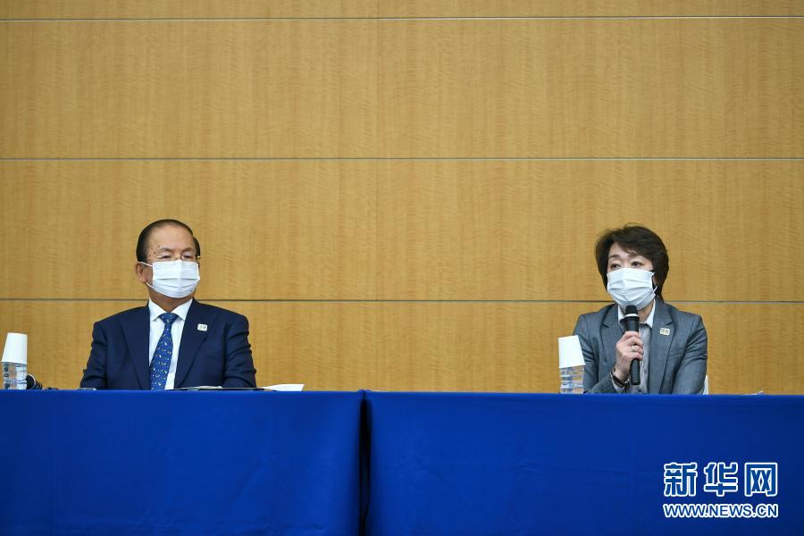 3月18日,东京奥组委主席桥本圣子(右)和首席执行官武藤敏郎在紧急发布会上。