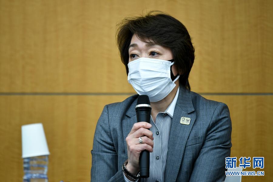 3月18日,东京奥组委主席桥本圣子在紧急发布会上。新华社/POOL/野木一广