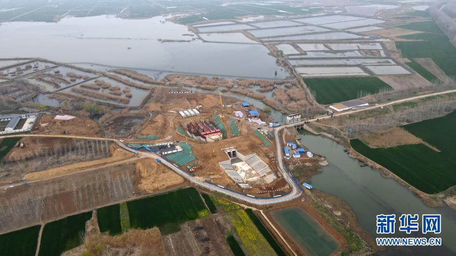 这是3月10日拍摄的蚌埠市固镇县怀洪新河水系洼地治理工程施工现场(无人机照片)。新华社记者 陈诺 摄