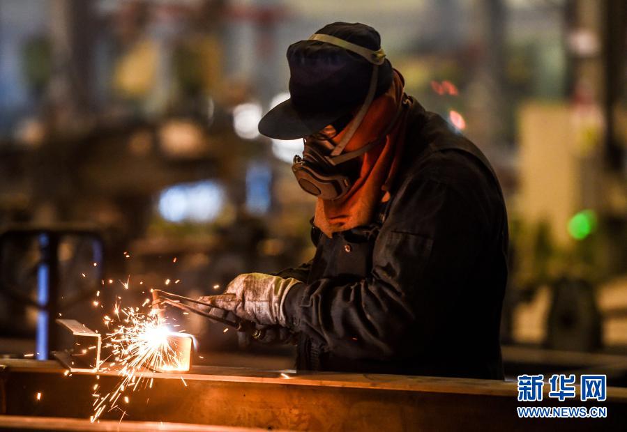 3月17日,在鄂尔多斯装备制造工业园区内,一家特种车辆制造有限责任公司的工人在焊接汽车配件。新华社记者 彭源 摄