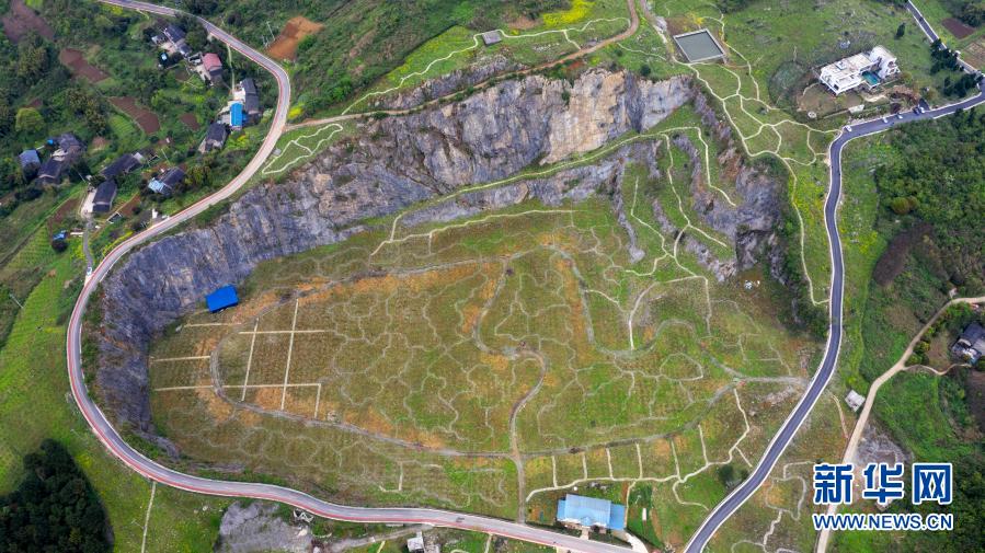 重庆市北碚区静观镇中华村一处曾经废弃的矿山经过生态治理和修复,变成绿意盎然的果园。这个矿山曾是一个碎石厂,2017年关闭后,当地对矿坑进行生态治理和修复,种植李树、桃树、樱桃等果树,并修建民宿,让曾经废弃的矿山重新披上绿装。