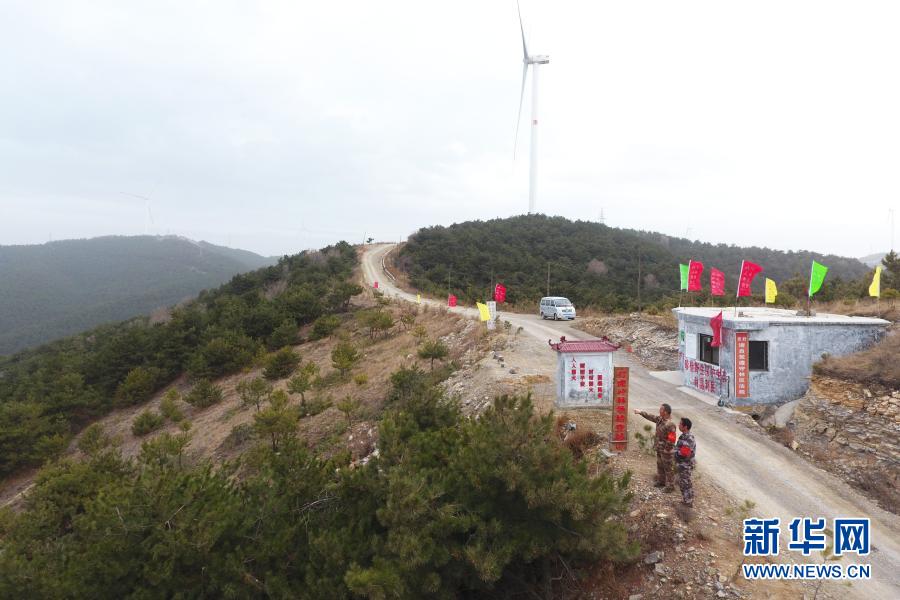 3月17日,秦安松(左)和同事刘伟林在山上巡查(无人机照片)。
