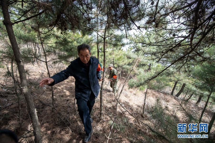 3月16日,秦安松(前)在山上巡查。