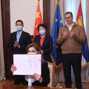 塞尔维亚总统府18日发布消息,塞方当天通过视频会议的方式与国药集团签署新冠疫苗采购协议。塞尔维亚总统武契奇和中国驻塞尔维亚大使陈波出席会议。
