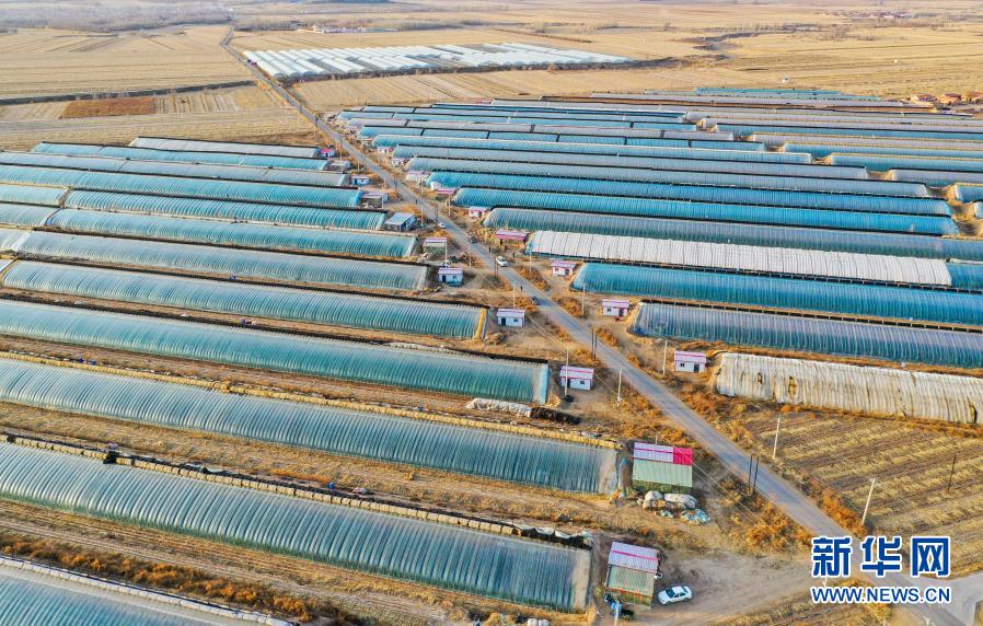 这是3月17日拍摄的宁城县齐家营子村设施农业大棚(无人机照片)。