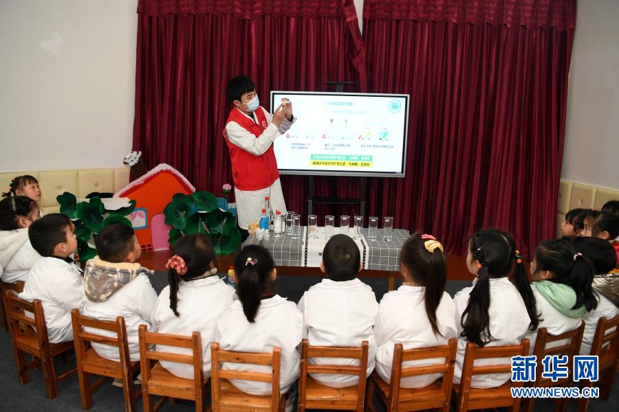 3月19日,科普志愿者在淝南家园幼儿园为孩子们讲解水知识。