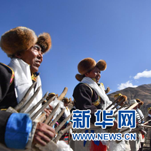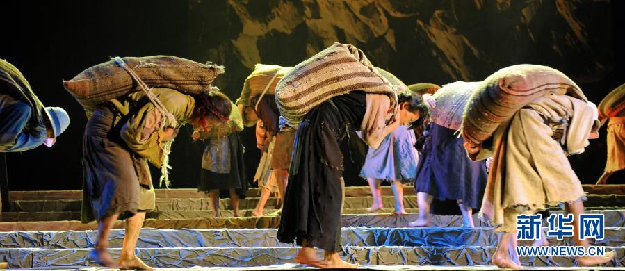 由克松农民自编自演的话剧《农奴泪》在拉萨人民会堂演出(2011年5月23日摄)。新华社记者 觉果 摄