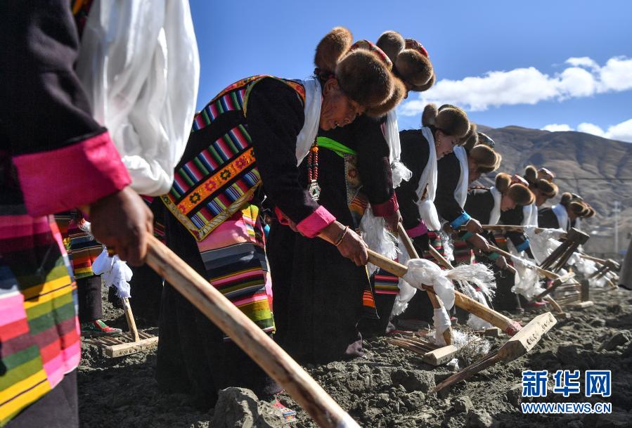 身着盛装的西藏山南市乃东区克松社区居民在进行春耕仪式(3月16日摄)。新华社记者 晋美多吉 摄