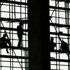 3月19日,中建三局施工人员在贵阳龙洞堡国际机场3号航站楼内进行室内吊顶施工。