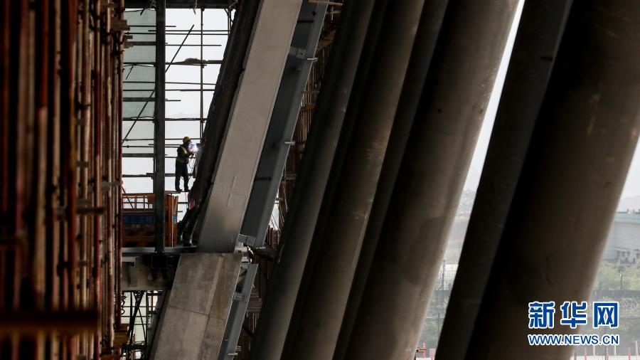 3月19日,中建三局施工人员在贵阳龙洞堡国际机场3号航站楼内施工。