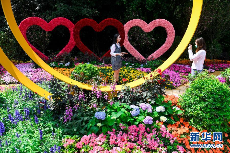 3月19日,在2021粤港澳大湾区深圳花展开放日上,记者在城市花园展片区拍摄香港特别行政区展出的花园。新华社记者 毛思倩 摄