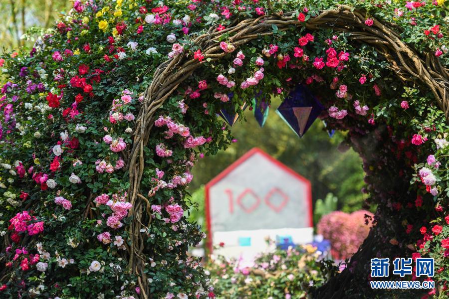 这是3月19日在2021粤港澳大湾区深圳花展开放日上拍摄的月季主题展区。新华社记者 毛思倩 摄