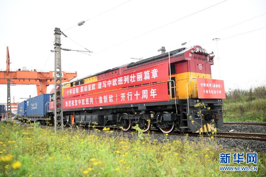 3月19日,中欧班列(渝新欧)十周年纪念专列从重庆团结村站发出。新华社记者 唐奕 摄