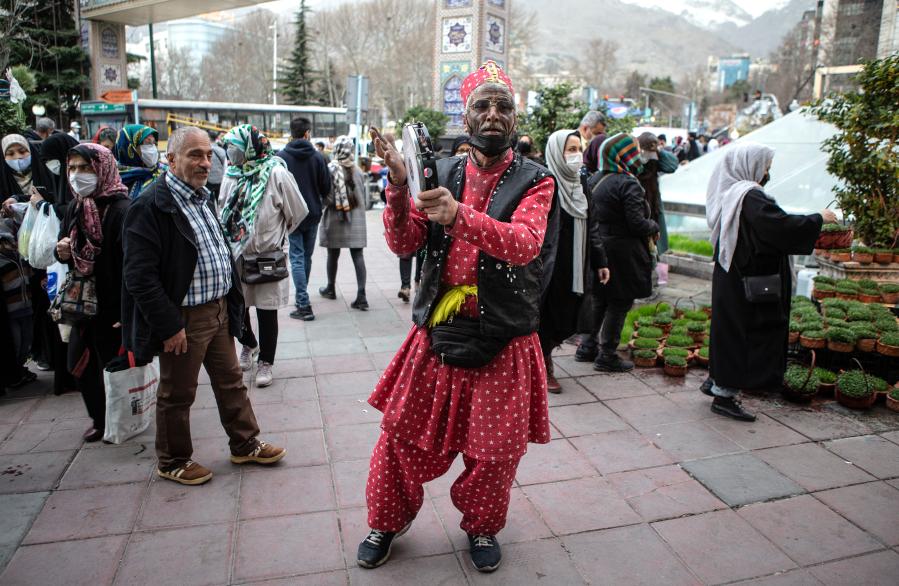 3月18日,一名男子在伊朗德黑兰市场内表演,迎接诺鲁孜节。
