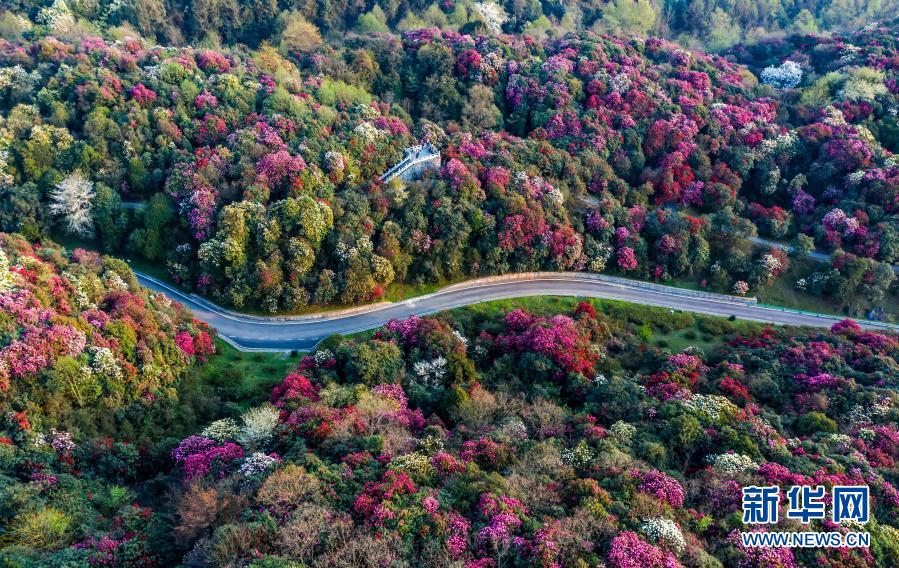 3月18日拍摄的百里杜鹃管理区金坡景区景色(无人机照片)。新华社发(范晖 摄)