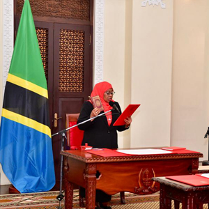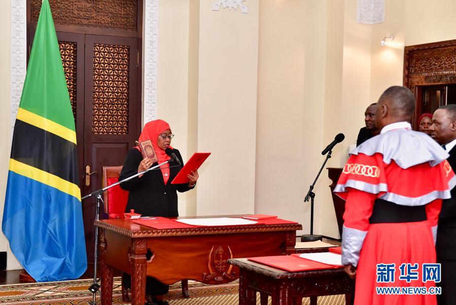 3月19日,坦桑尼亚新总统萨米娅·苏卢胡·哈桑在达累斯萨拉姆的总统府宣誓就职。