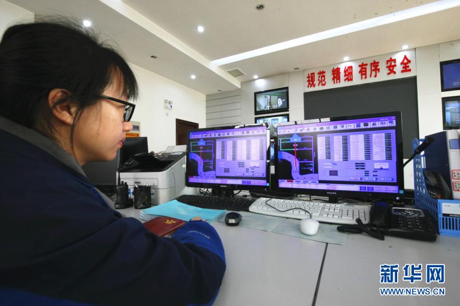 3月18日,工作人员在南水北调东线台儿庄泵站中央控制室实时监控机组运行情况。新华社记者 刘诗平 摄