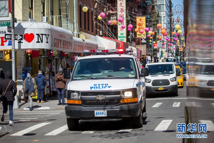 3月19日,警车在美国纽约唐人街巡逻。亚特兰大市区两家水疗中心和城郊一家按摩院16日发生3起枪击案,造成8人死亡、两人受伤。死者中有7名女性,其中6人是亚裔。枪击案发生后,纽约市在多个亚裔聚居区加派警力巡逻。新华社发(郭克摄)