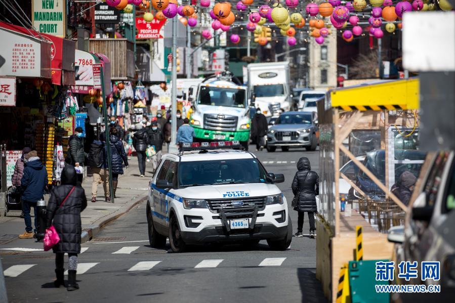 3月19日,警车在美国纽约唐人街巡逻。新华社发(郭克摄)