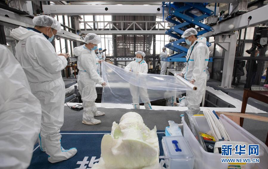 3月20日,在三星堆遗址考古发掘现场,考古人员准备用薄膜覆盖3号“祭祀坑”,结束当天的工作。