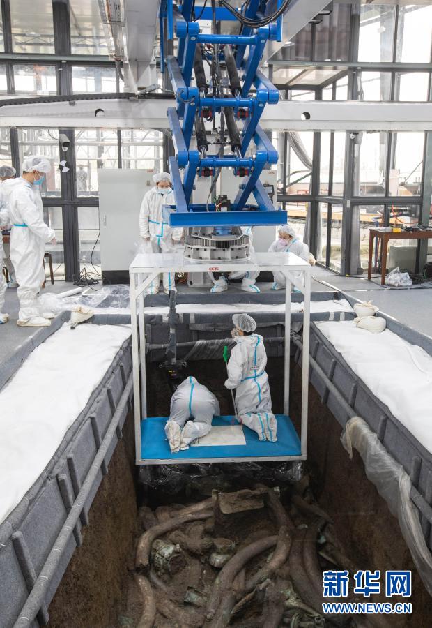 3月20日,在三星堆遗址考古发掘现场,考古人员在3号“祭祀坑”内工作。