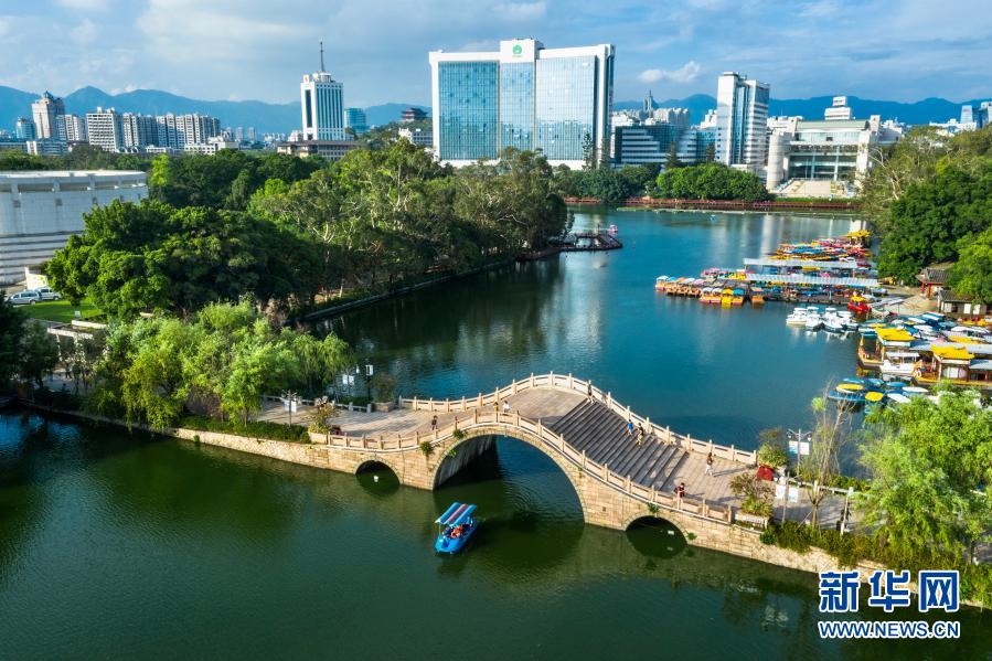 这是福州西湖公园及周边城市景观(2020年5月18日摄,无人机照片)。