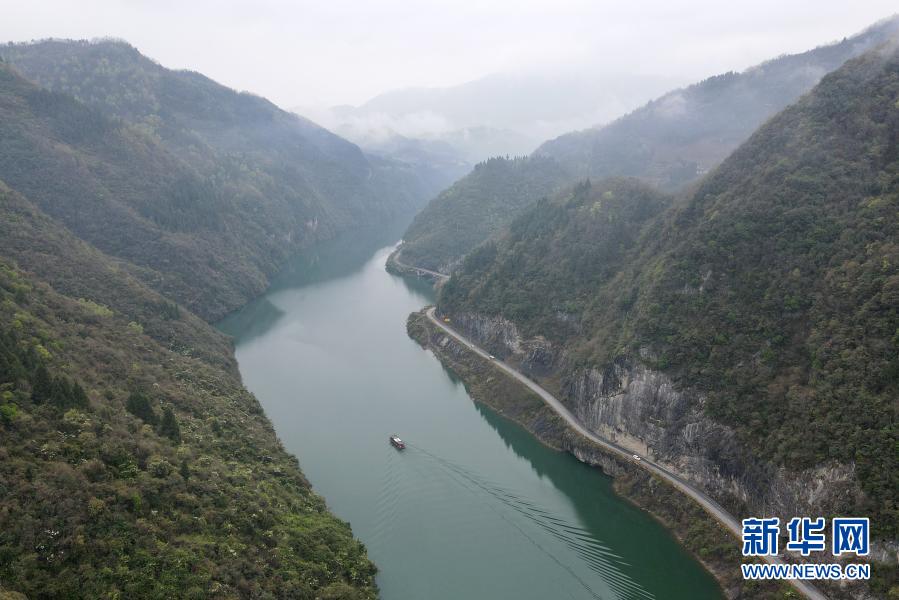 在石泉县后柳镇拍摄的汉江景色(3月19日摄,无人机照片)。新华社记者 邵瑞 摄