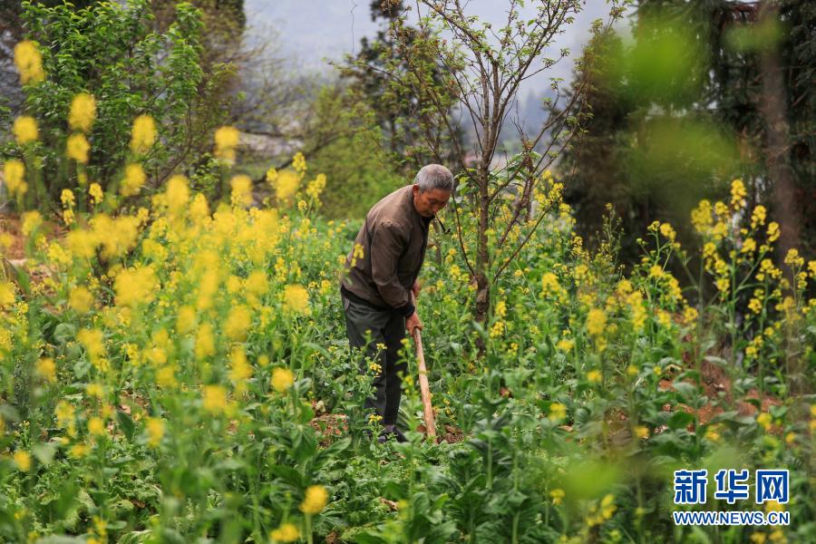 3月20日,贵州省毕节市赫章县平山镇对江社区村民在地里劳作。