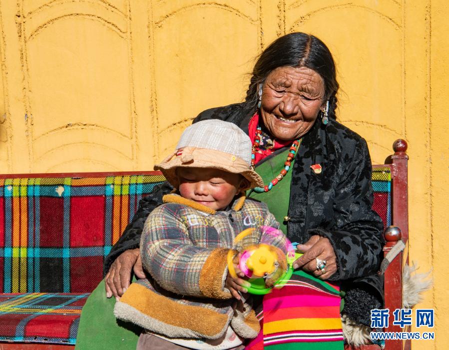 旦增措姆和孙女在晒太阳(2月25日摄)。新华社记者 孙非 摄