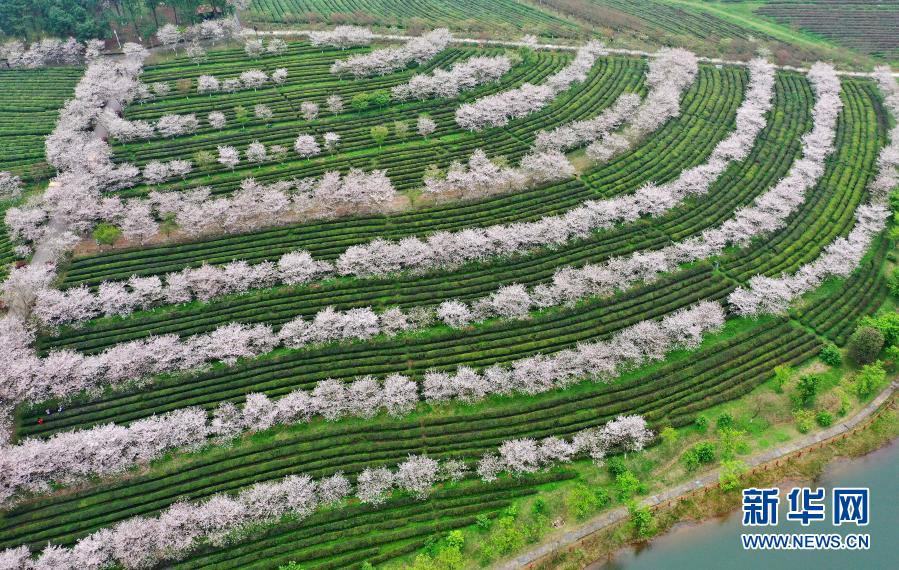 这是3月20日拍摄的南昌县凤凰沟景区盛开的樱花(无人机照片)。