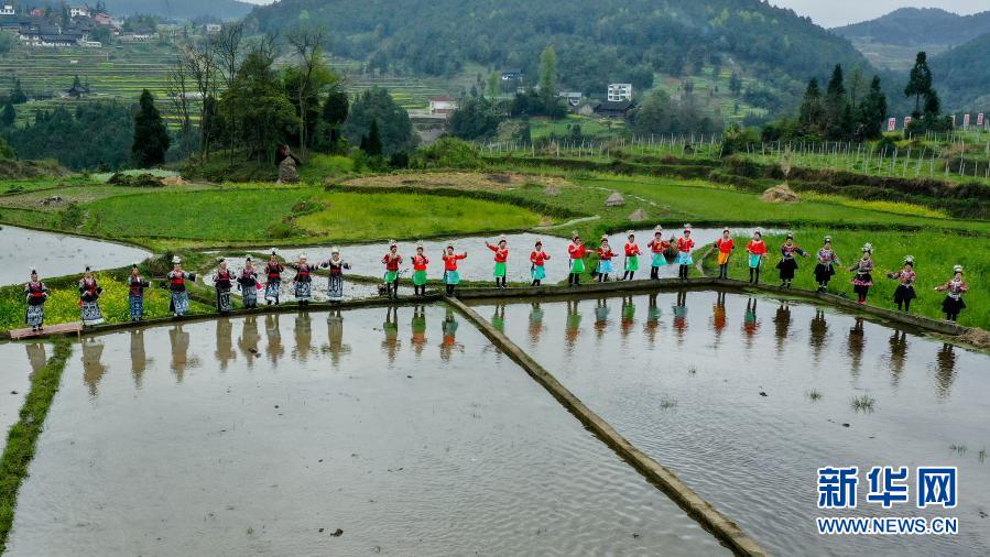 当日是春分,辛丑年丹寨“春耕大典”在贵州省丹寨县万达小镇及丹寨县龙泉镇卡拉村举办。苗族同胞载歌载舞,在梯田上开耕、插秧,庆祝春耕春播季节来临。近年来,丹寨万达小镇打造“春耕大典”等农事节庆活动,助推丹寨农文旅结合发展,促进当地村民增收。