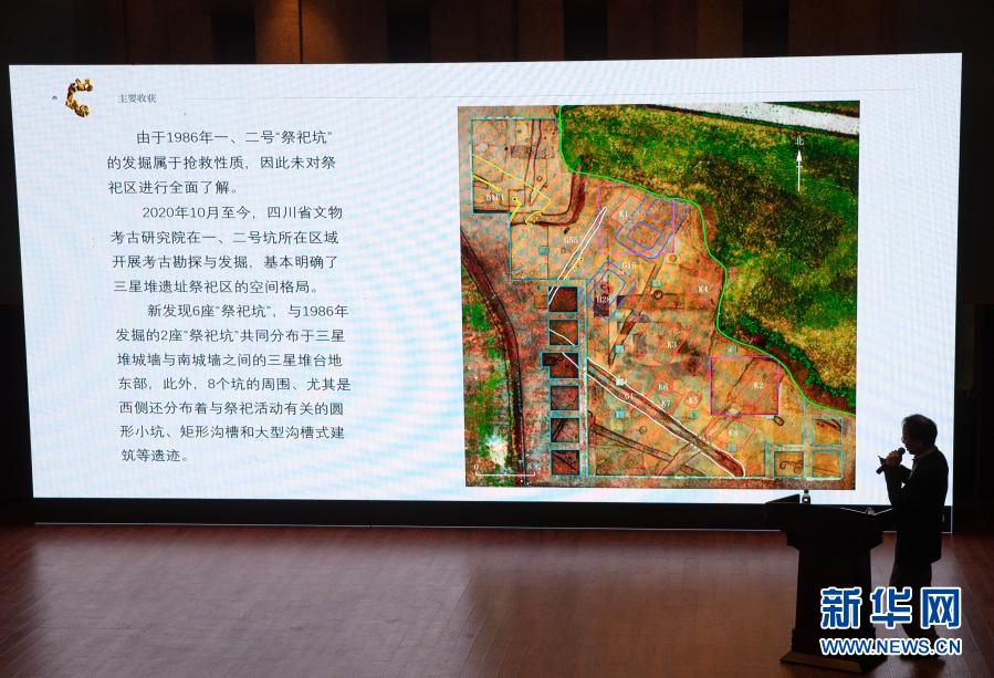3月20日,四川省文物考古研究院三星堆遗址工作站站长雷雨通报本次三星堆遗址发掘新情况。新华社记者 江宏景 摄