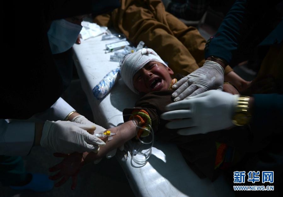 3月13日,一名受伤儿童在阿富汗赫拉特市一家医院接受治疗。