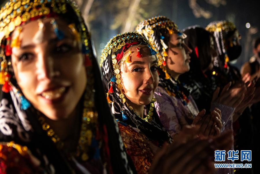 3月15日晚,伊朗民众身着传统民族服装在首都德黑兰参加诺鲁孜节前的庆祝活动。