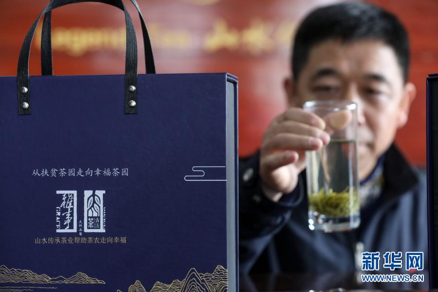 3月21日,“扶贫茶园”园主刘殿兴在冲泡刚制作好的绿茶。
