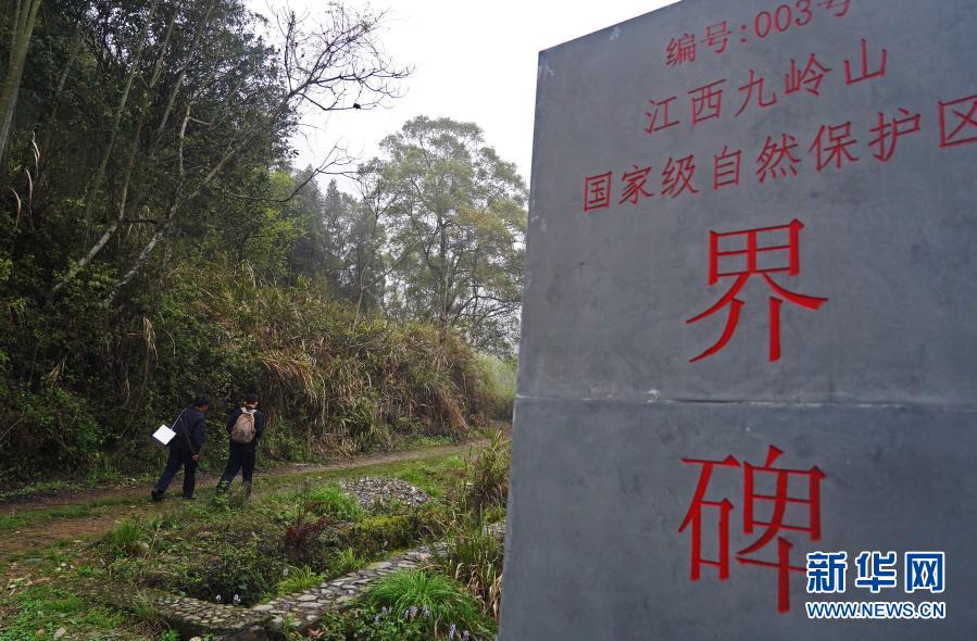 陈亮亮(右)和护林员进入保护区,开始巡护工作(3月17日摄)。新华社记者 万象 摄