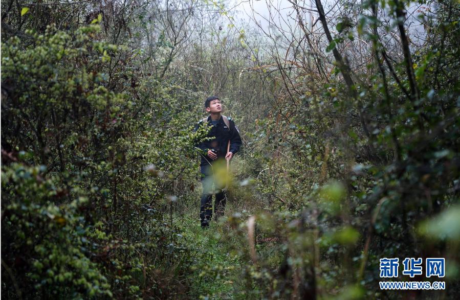 陈亮亮在保护区的密林中穿行(3月17日摄)。新华社记者 万象 摄