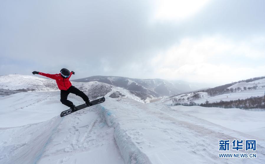 3月20日,冬残奥会国家集训队单板滑雪运动员贺一朋在冬残奥会训练基地训练。