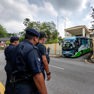 3月21日,一辆大巴车从位于马来西亚吉隆坡的朝鲜驻马来西亚使馆驶出。