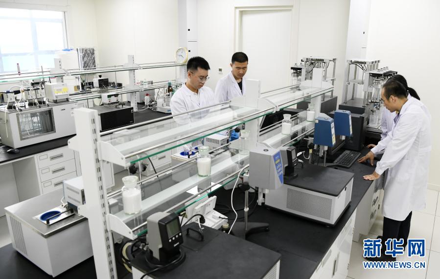 在大庆油田勘探开发研究院,科研人员在进行聚合物驱油实验(2019年6月26日摄)。新华社记者 王建威 摄