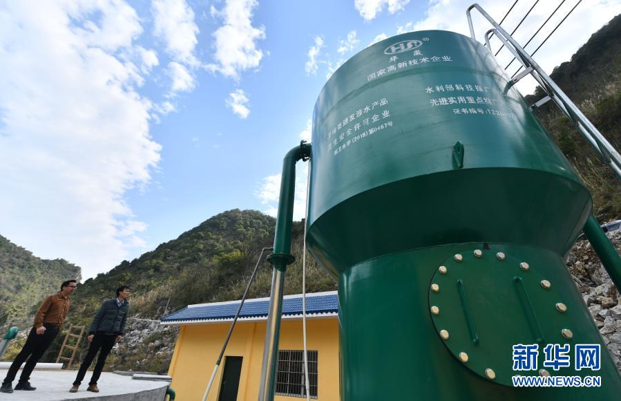 在广西大化瑶族自治县板升乡八好村,驻村工作队员查看供水工程运行情况(2月7日摄)。新华社记者 黄孝邦 摄